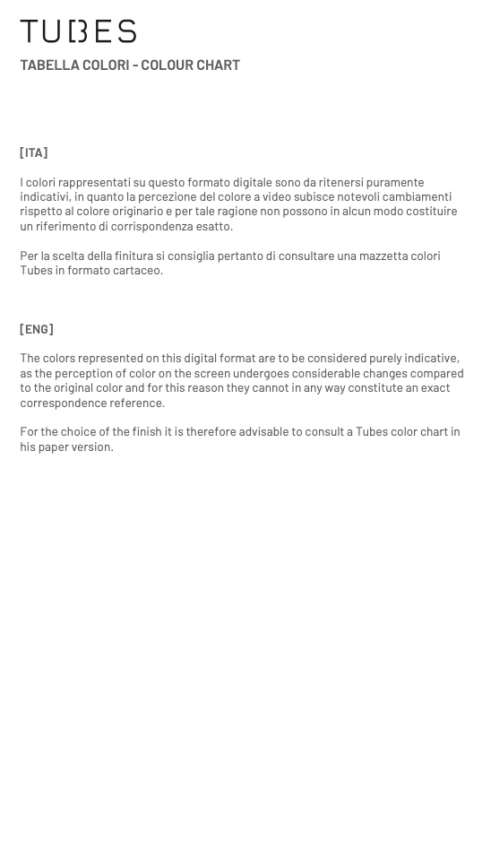 For the choice of the finish it is therefore advisable to consult a Tubes color chart in