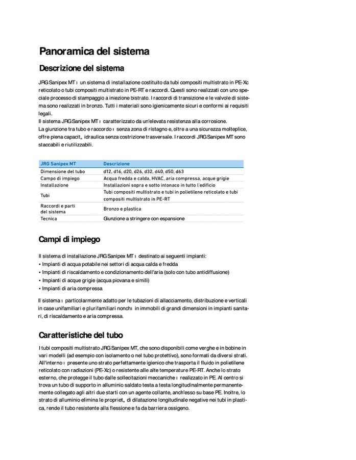JRG Sanipex MT è un sistema di installazione costituito da tubi compositi multistrato in PE-Xc