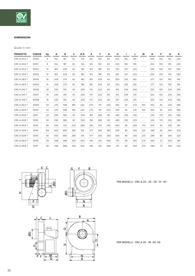 PER MODELLI: CRC-A 35 - 45 -50 -56