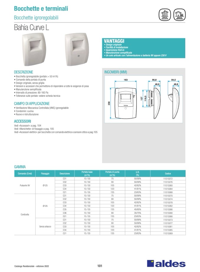 • Bocchetta igroregolabile (portate > 50 m