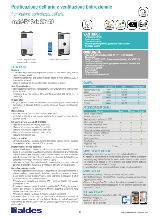 • Facilità di gestione grazie all’applicazione Aldes Connect