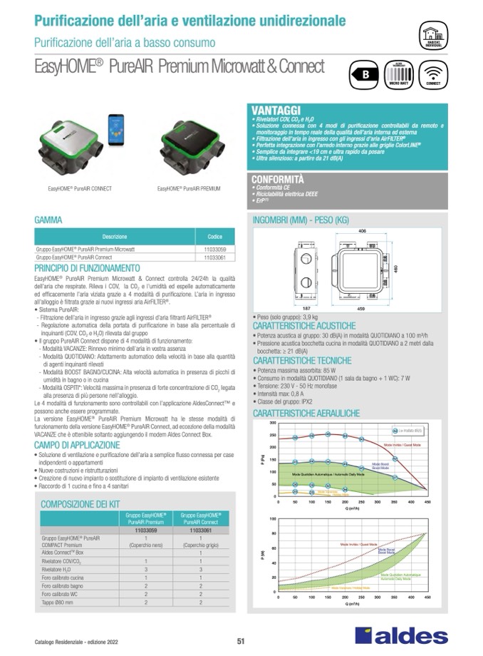 • Potenza acustica al gruppo: 30 dB(A) in modalità QUOTIDIANO a 100 m3/h