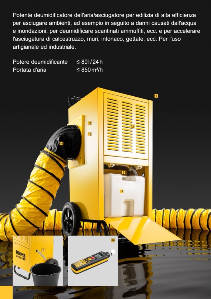 e inondazioni, per deumidificare scantinati ammuffiti, ecc. e per accelerare
