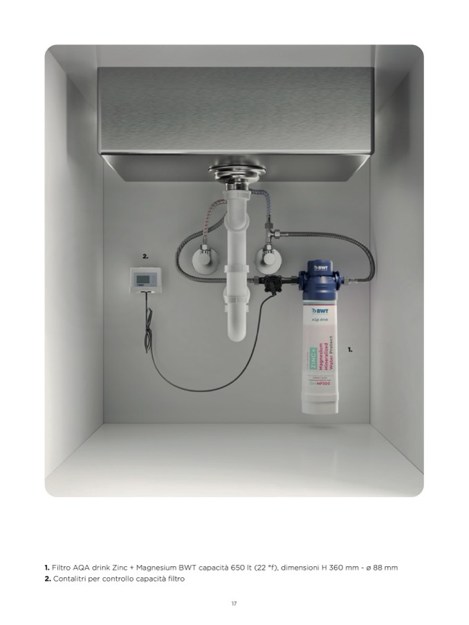 1. Filtro AQA drink Zinc + Magnesium BWT capacità 650 lt (22 °f), dimensioni H 360 mm - ø 88 mm