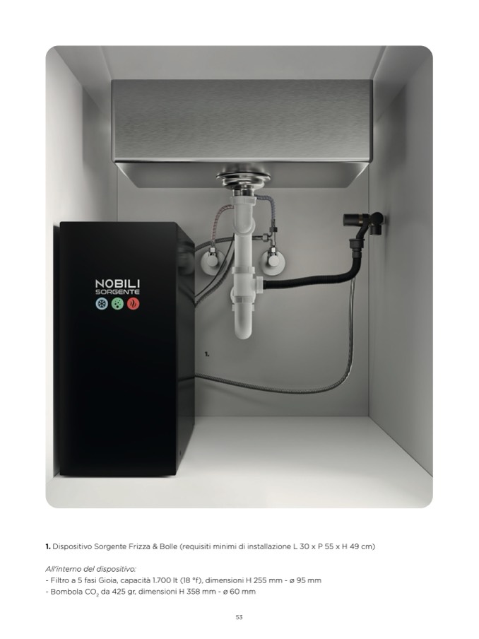 1. Dispositivo Sorgente Frizza & Bolle (requisiti minimi di installazione L 30 x P 55 x H 49 cm)