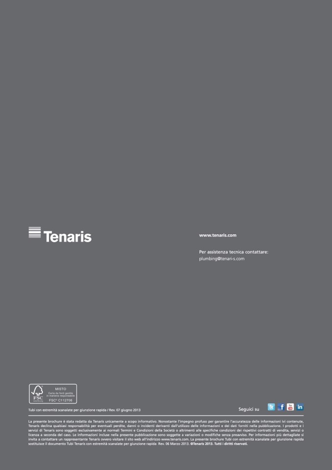 invita a contattare un rappresentante Tenaris ovvero visitare il sito web all’indirizzo www.tenaris.com. La presente brochure Tubi con estremità scanalate per giunzione rapida