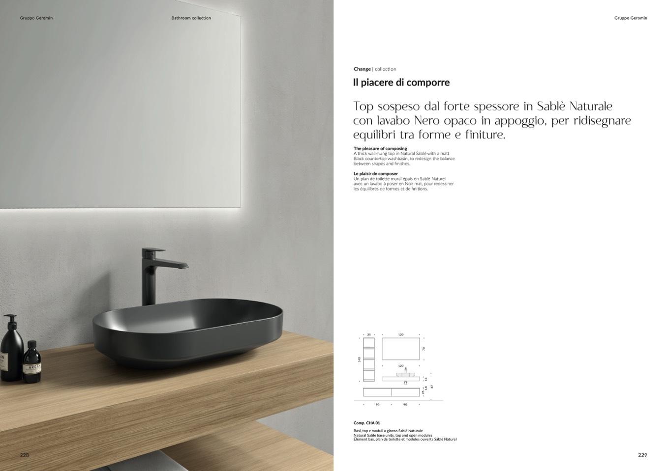 Élément bas, plan de toilette et modules ouverts Sablè Naturel