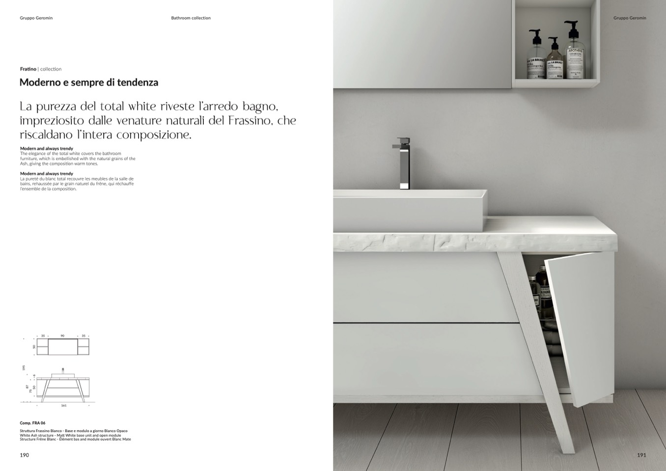 bains, rehaussée par le grain naturel du frêne, qui réchauffe