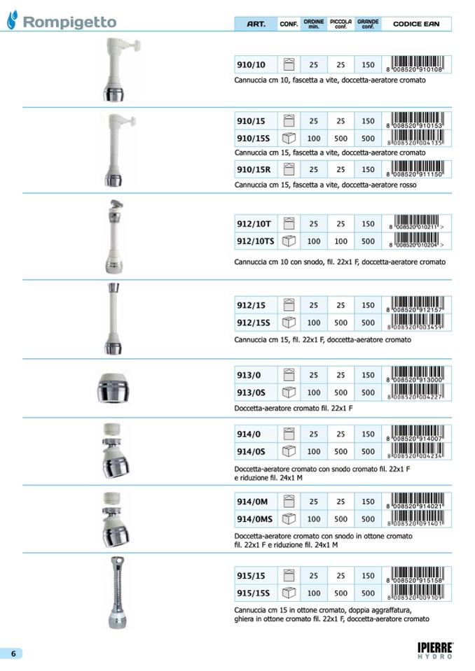 Cannuccia cm 15, fil. 22x1 F, doccetta-aeratore cromato