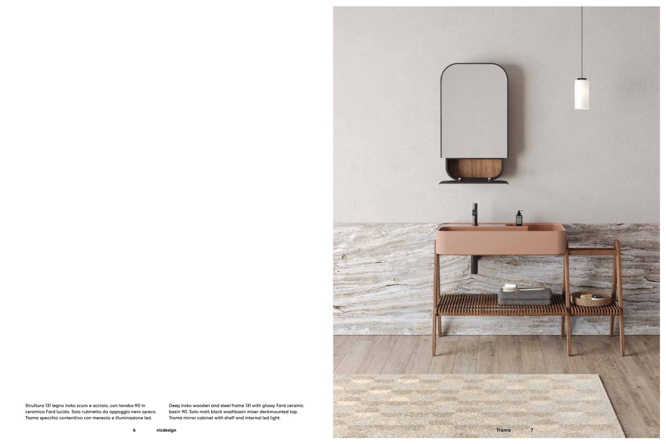 Struttura 131 legno Iroko scuro e acciaio, con lavabo 90 in