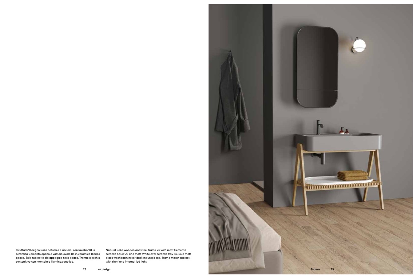 Struttura 95 legno Iroko naturale e acciaio, con lavabo 90 in