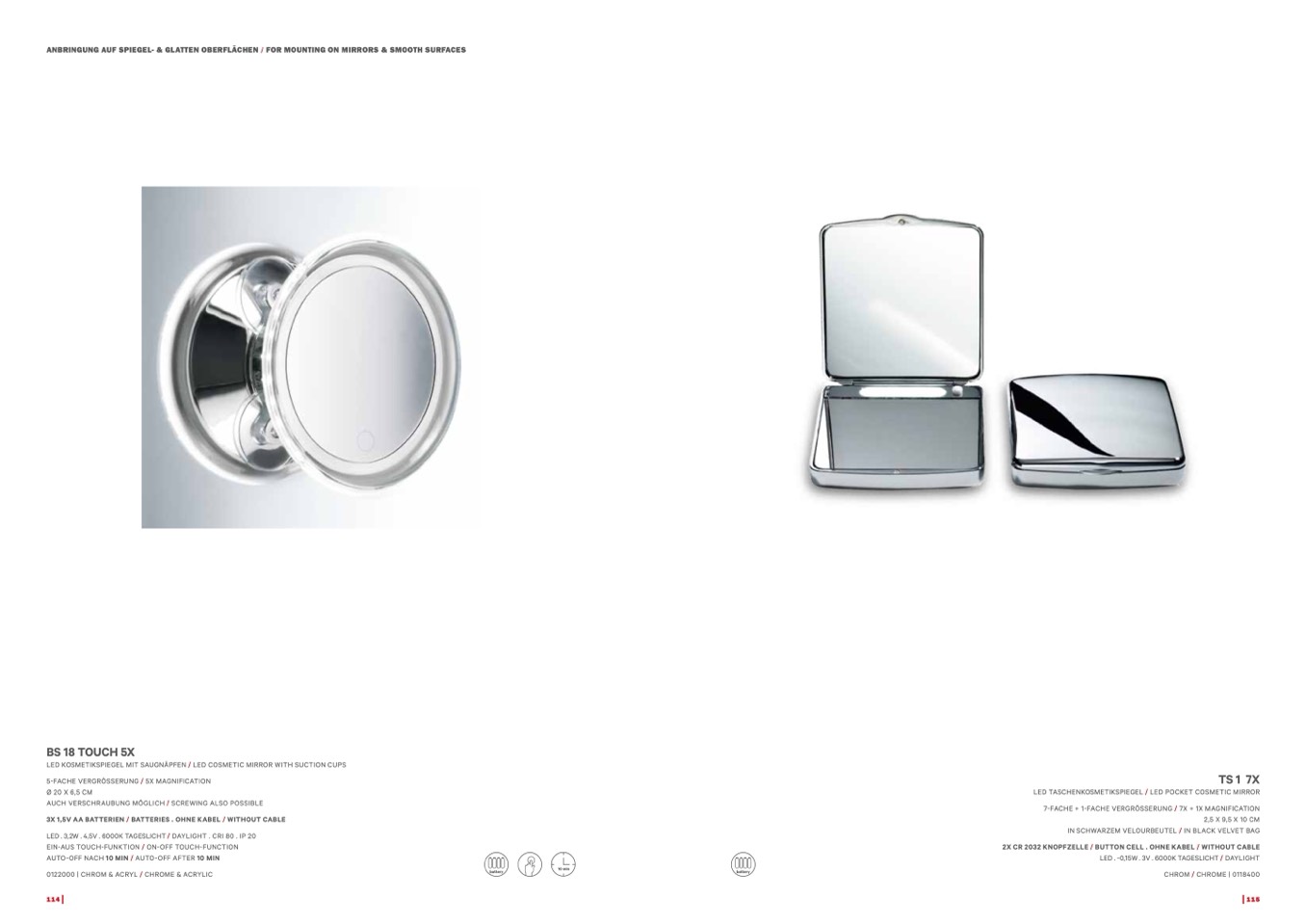 LED KOSMETIKSPIEGEL MIT SAUGNÄPFEN / LED COSMETIC MIRROR WITH SUCTION CUPS