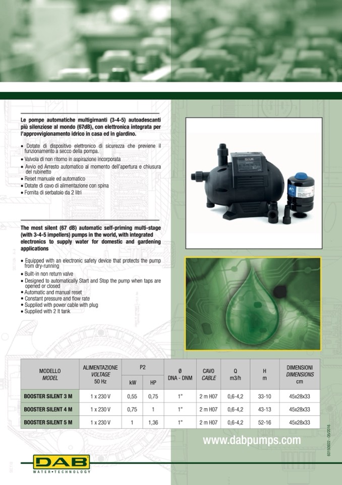 The most silent (67 dB) automatic self-priming multi-stage