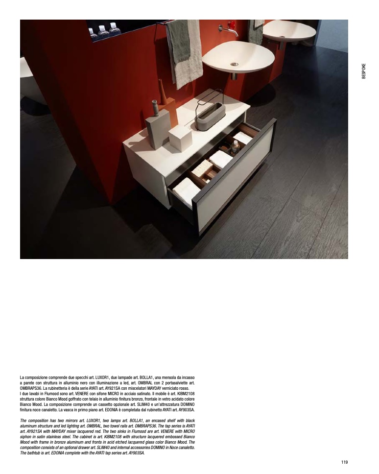 OMBRAPS36. La rubinetteria è della serie AYATI art. AY921SA con miscelatori MAYDAY verniciato rosso.