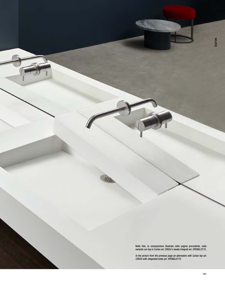 variante con top in Corian art. CRS54 e lavabi integrati art. OPENSLOT72.