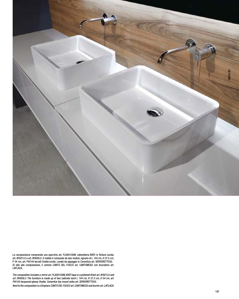 P 54 cm, art. PI4144 laccati Ovatta lucido. Lavabi da appoggio in Ceramilux art. SERVORETTO50.