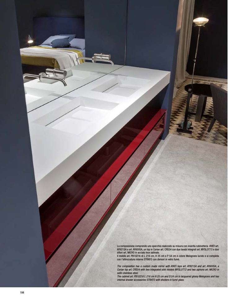 The composition has a custom made mirror with AYATI taps art. AY921SA and art. AY600SA, a