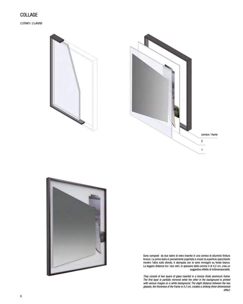 bronzo. La prima lastra è parzialmente argentata a creare la superficie specchiante