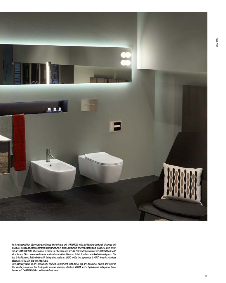 The sanitary-ware is art. KOMODO3 and art. KOMODO4 with AYATI tap art. AY400SA. Above and next to