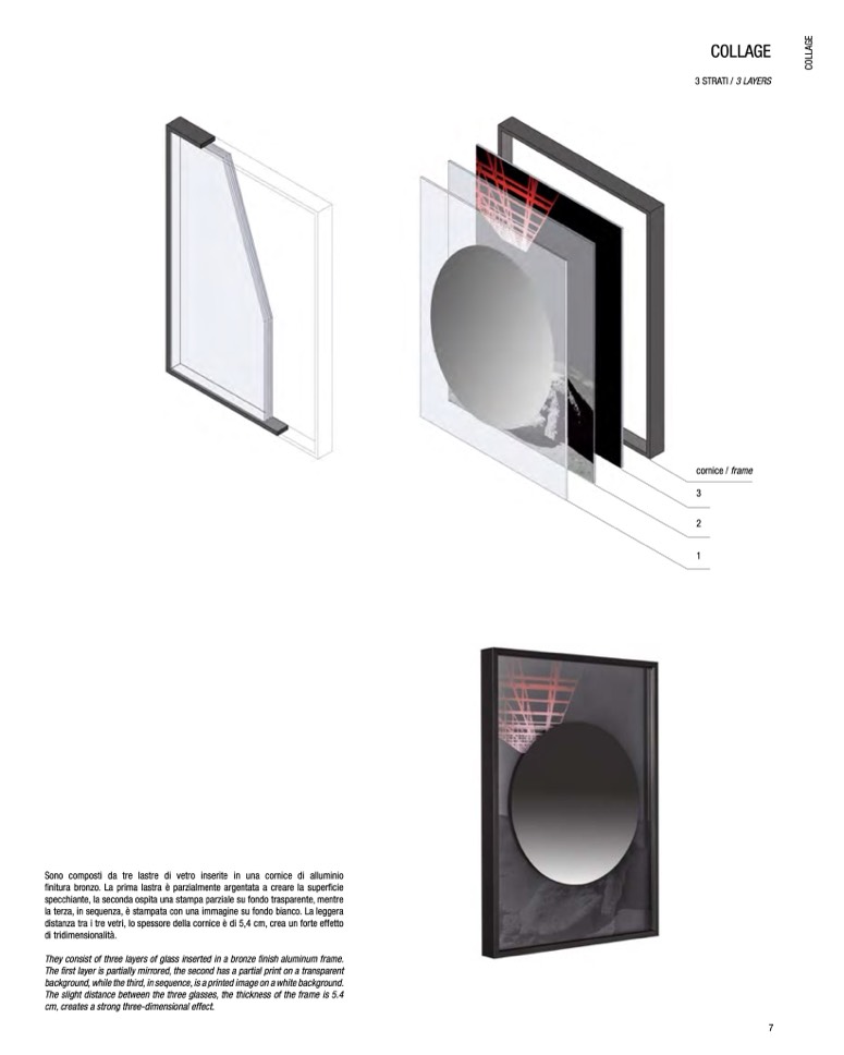 specchiante, la seconda ospita una stampa parziale su fondo trasparente, mentre