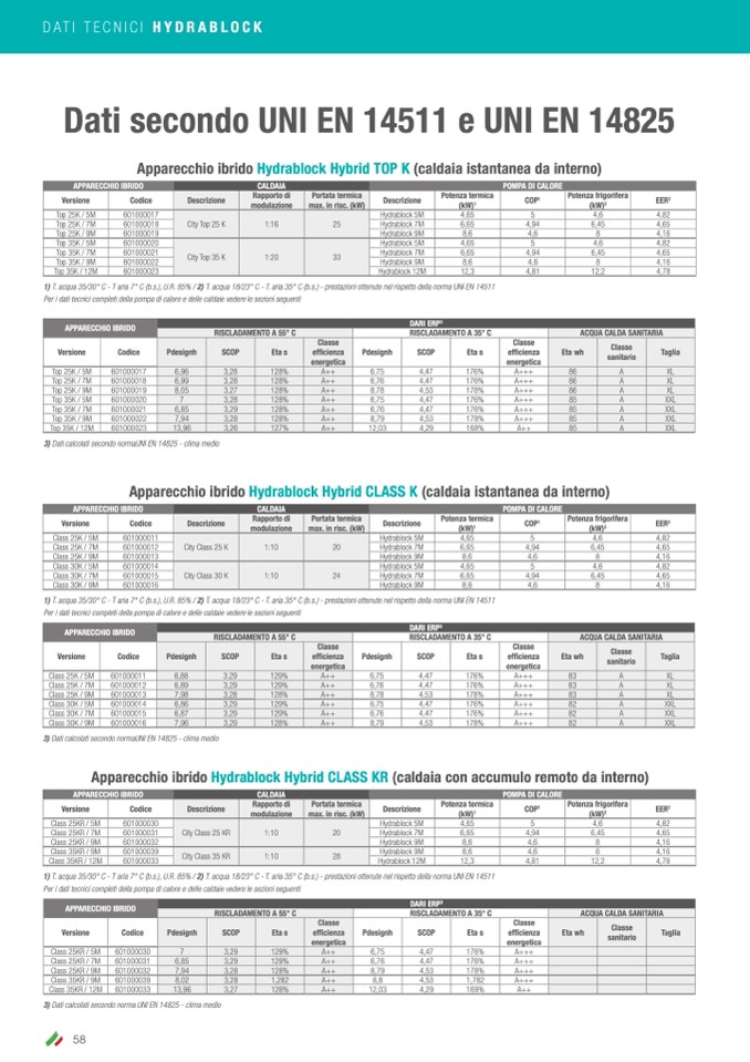 3) Dati calcolati secondo norma UNI EN 14825 - clima medio