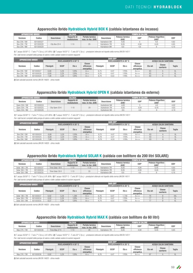 Per i dati tecnici completi della pompa di calore e delle caldaie vedere le sezioni seguenti