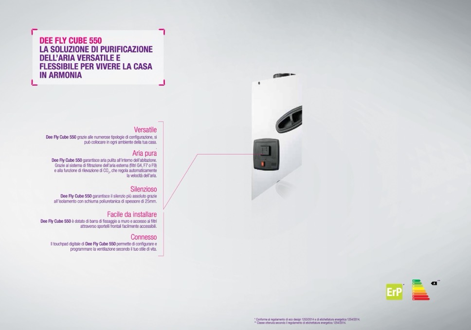 Dee Fly Cube 550 garantisce aria pulita all’interno dell’abitazione.
