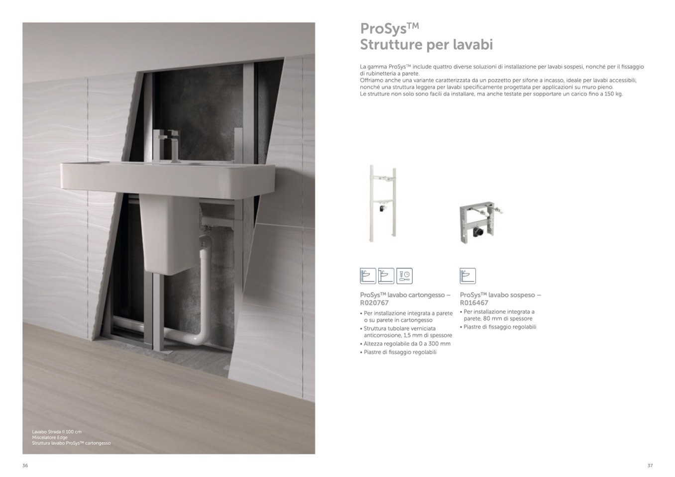 nonché una struttura leggera per lavabi specificamente progettata per applicazioni su muro pieno.