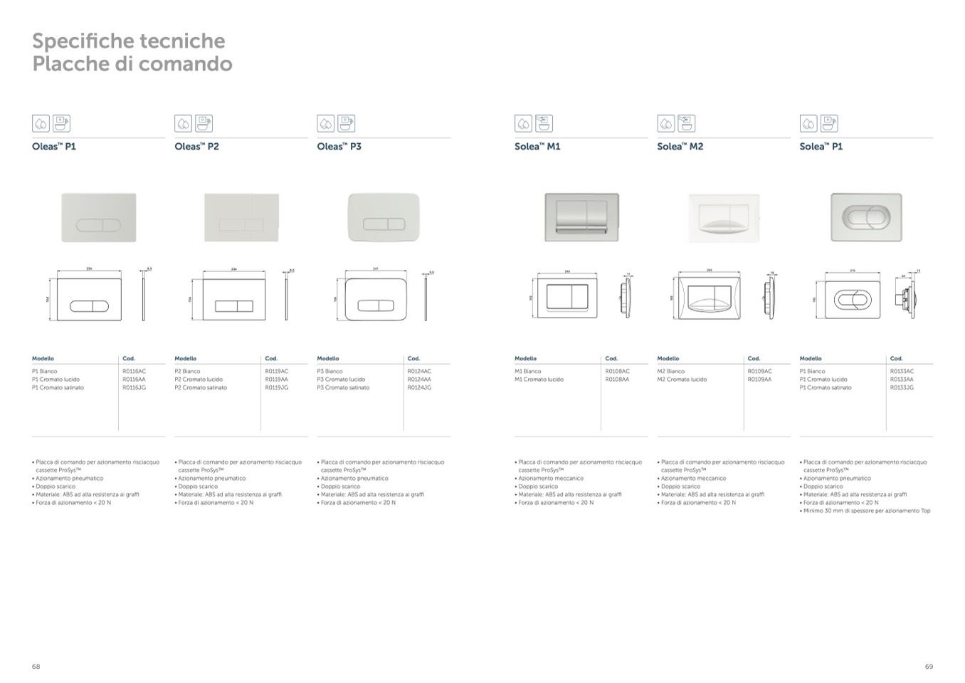 • Placca di comando per azionamento risciacquo