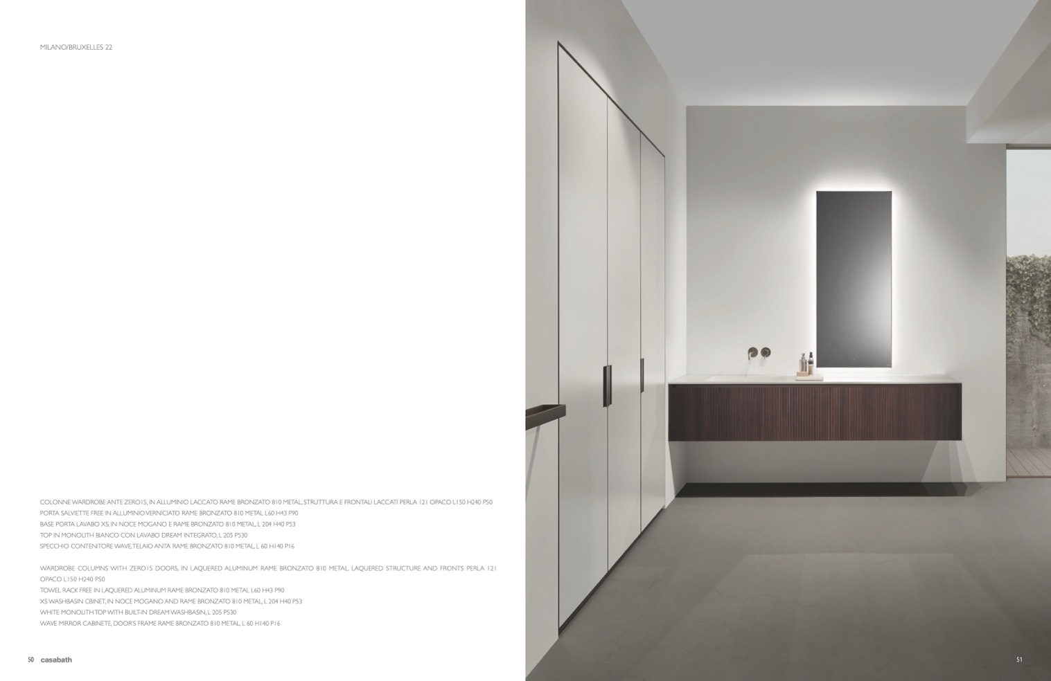COLONNE WARDROBE ANTE ZERO15, IN ALLUMINIO LACCATO RAME BRONZATO 810 METAL, STRUTTURA E FRONTALI LACCATI PERLA 121 OPACO L150 H240 P50