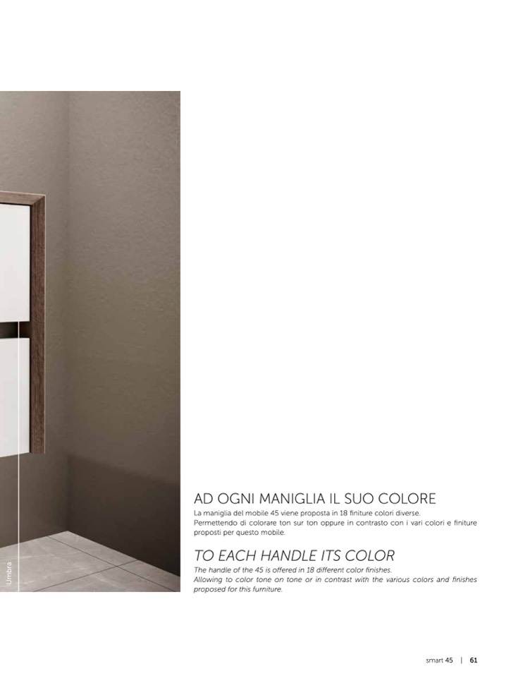 La maniglia del mobile 45 viene proposta in 18 finiture colori diverse.