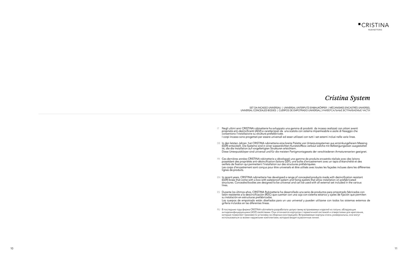In den letzten Jahren hat CRISTINA rubinetterie eine breite Palette von Unterputzsystemen aus entzinkungsfreiem Messing