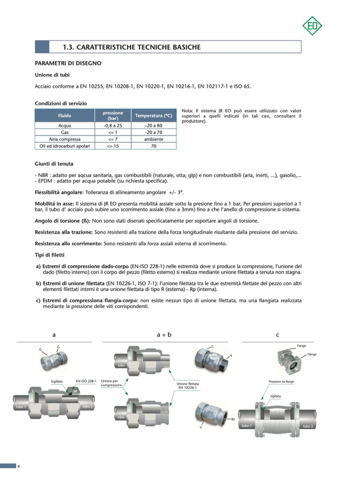Mobilitá in asse: Il sistema di JR EO presenta mobilitá assiale sotto la presione fino a 1 bar, Per pressioni superiori a 1