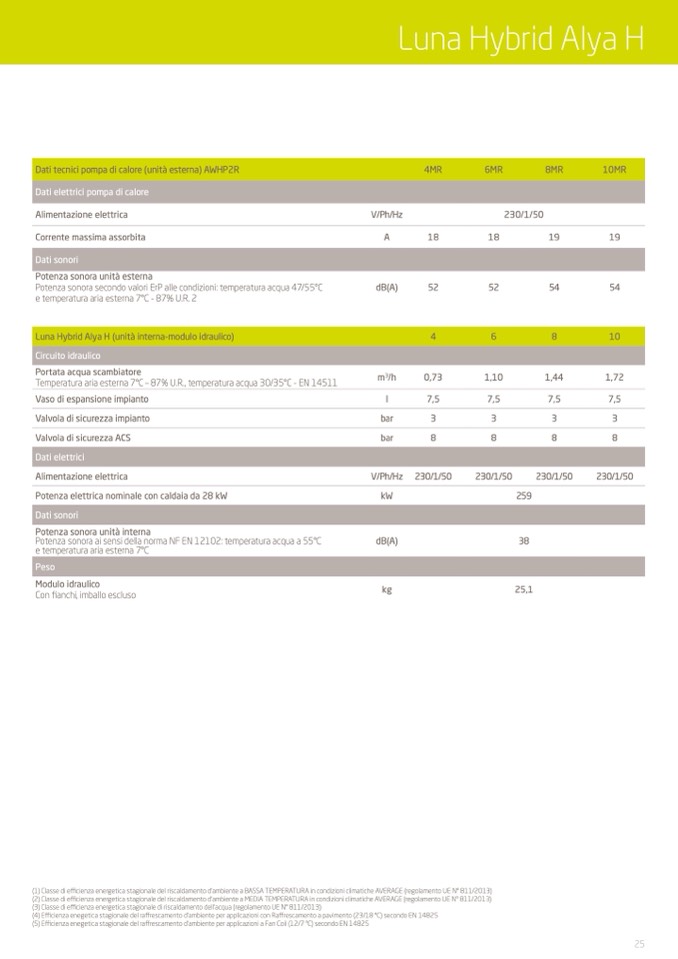 Temperatura aria esterna 7°C – 87% U.R., temperatura acqua 30/35°C - EN 14511
