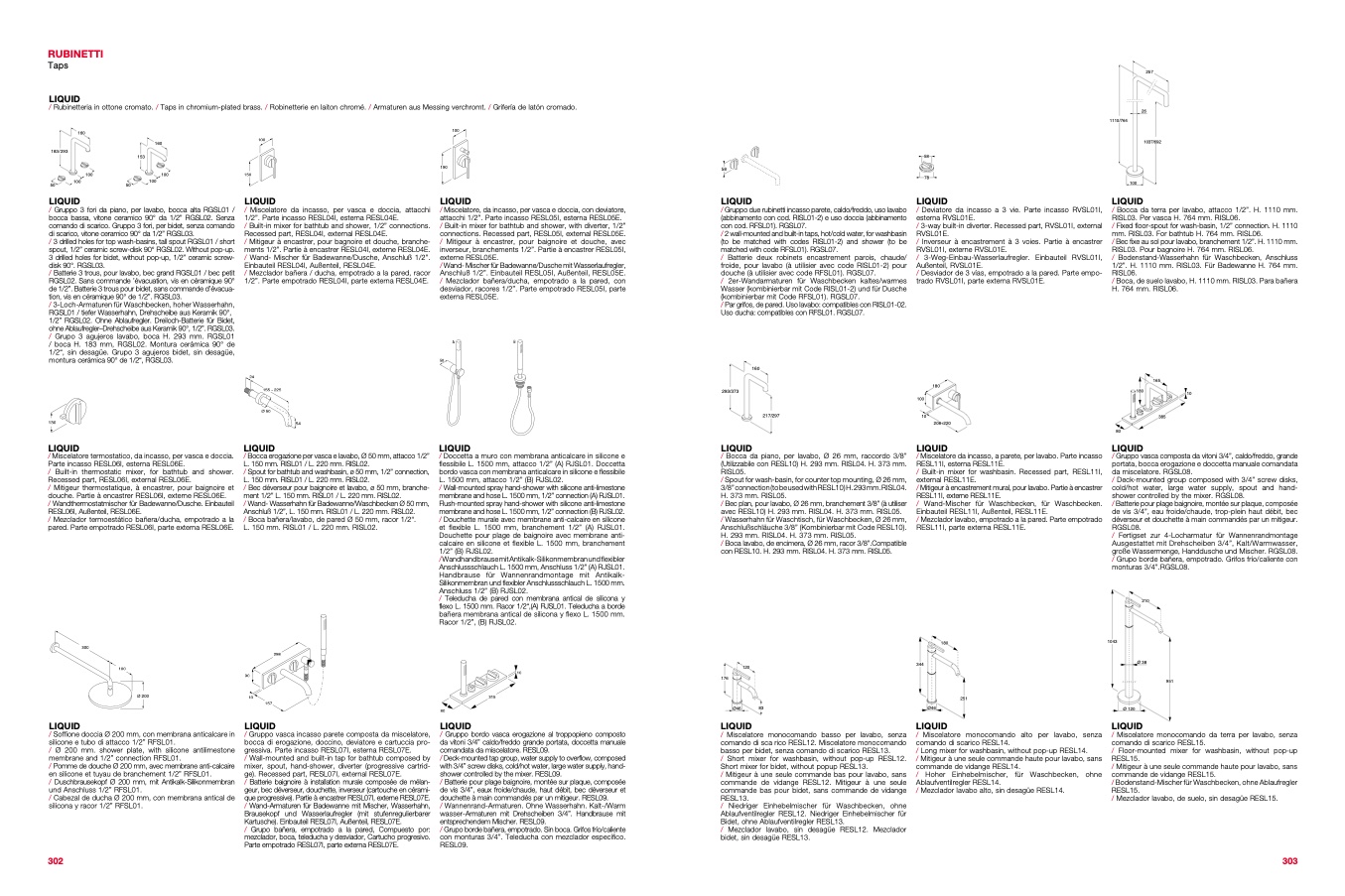 / Rubinetteria in ottone cromato. / Taps in chromium-plated brass. / Robinetterie en laiton chromé. / Armaturen aus Messing verchromt. / Grifería de latón cromado.