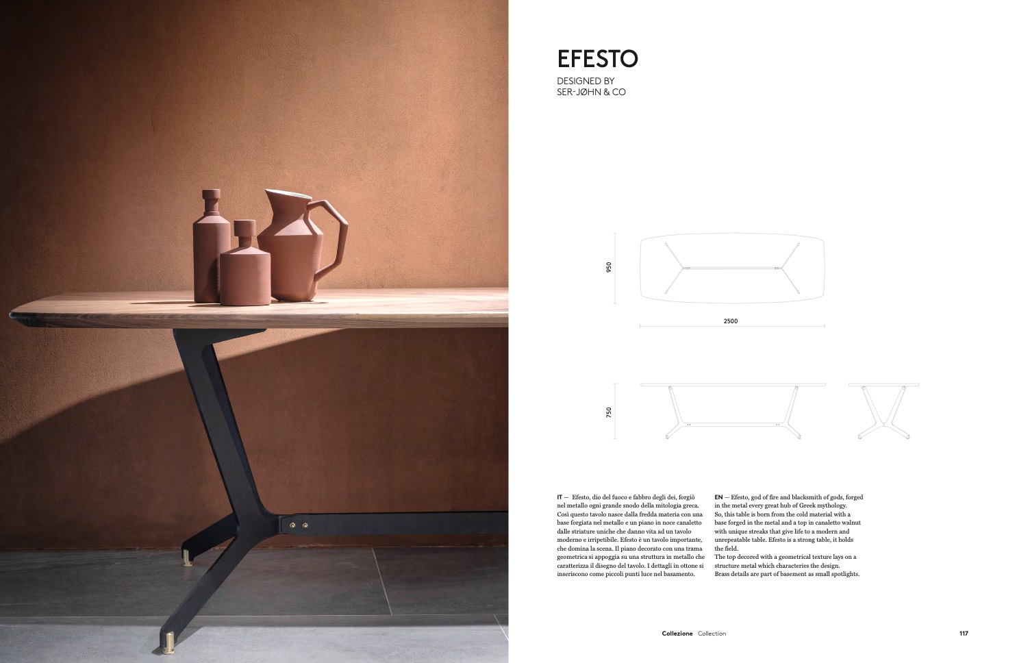 caratterizza il disegno del tavolo. I dettagli in ottone si