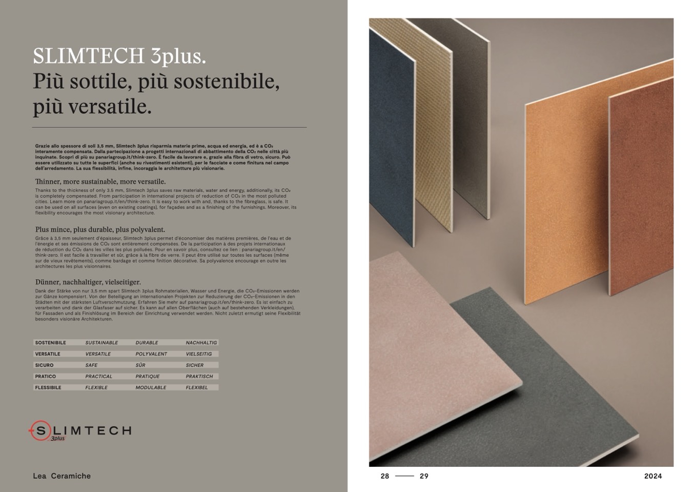 Grazie allo spessore di soli 3,5 mm, Slimtech 3plus risparmia materie prime, acqua ed energia, ed è a CO2