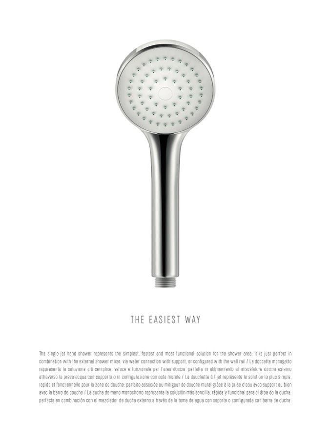 The single jet hand shower represents the simplest, fastest and most functional solution for the shower area: it is just perfect in