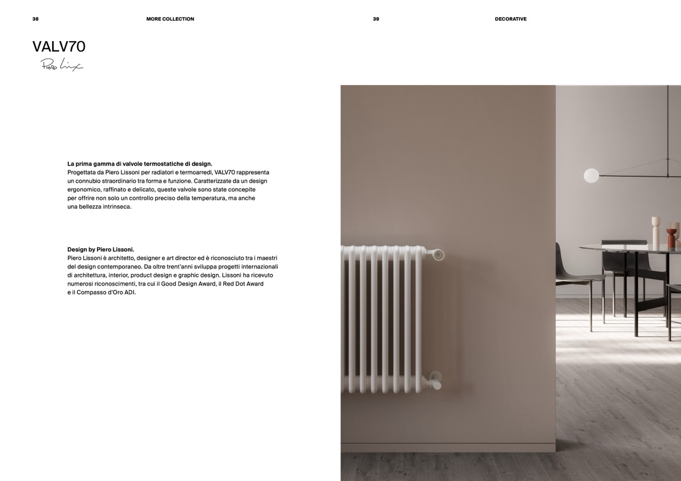 Progettata da Piero Lissoni per radiatori e termoarredi, VALV70 rappresenta