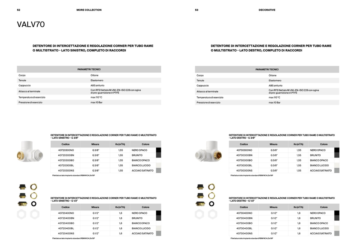 DETENTORE DI INTERCETTAZIONE E REGOLAZIONE CORNER PER TUBO RAME O MULTISTRATO
