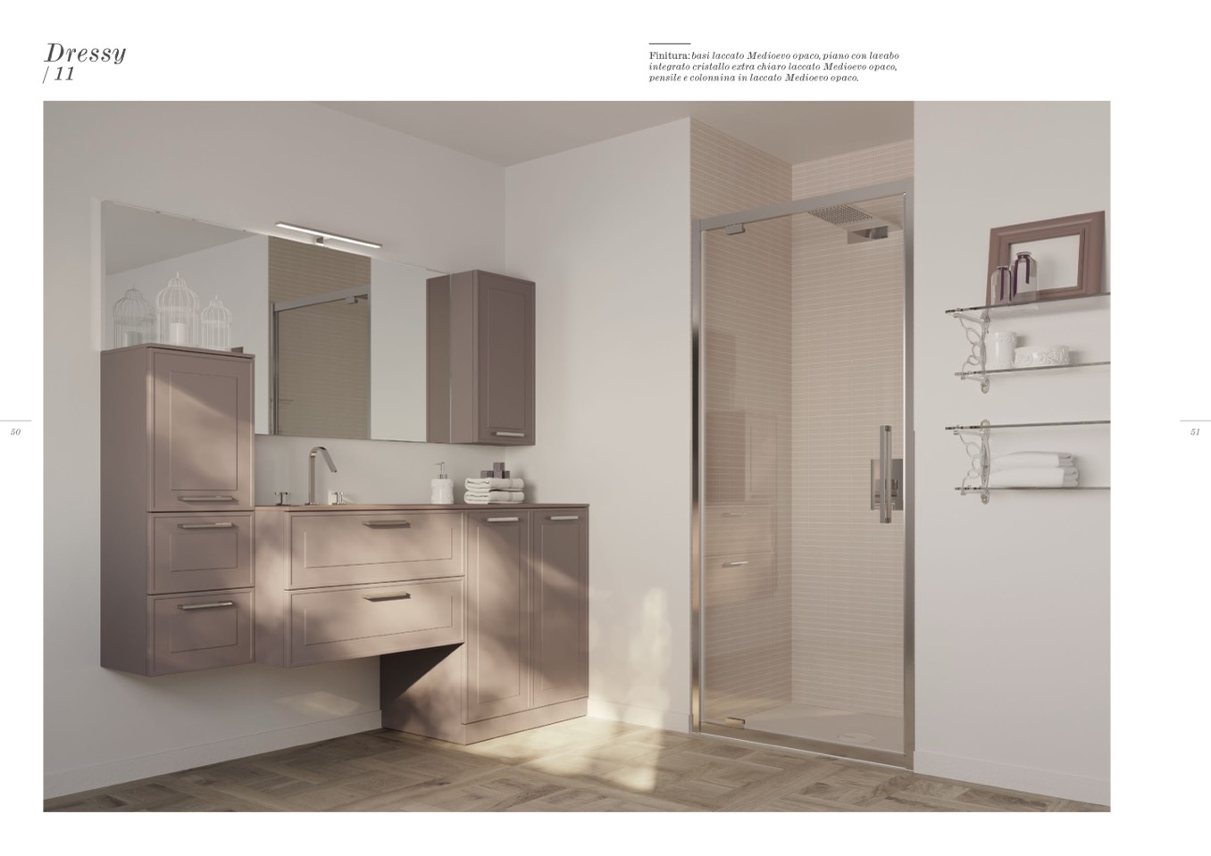 Finitura: basi laccato Medioevo opaco,piano con lavabo