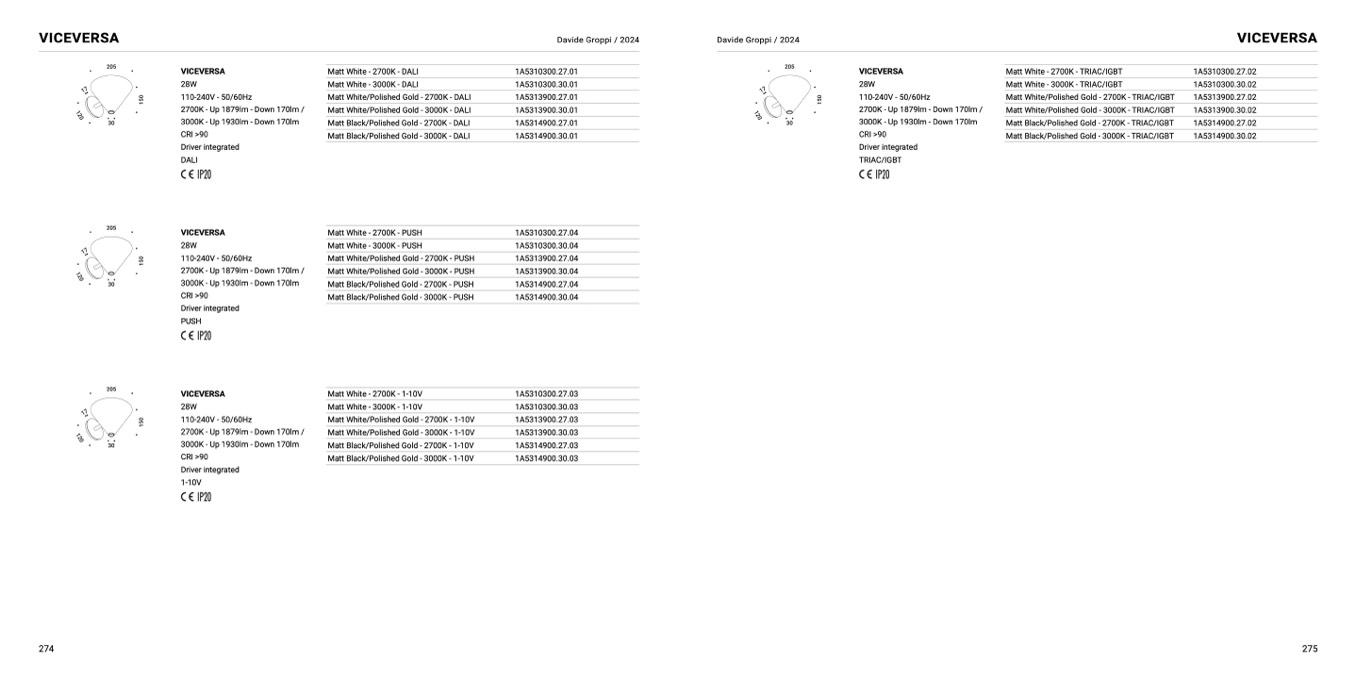 Matt White/Polished Gold - 3000K - TRIAC/IGBT