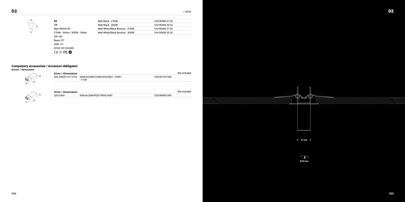220-240V(110-127V) 500mA/25W(13,5W)/IP20/DALI - PUSH