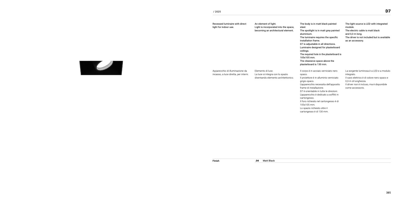 incasso, a luce diretta, per interni.