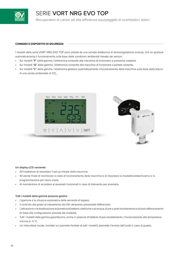 I modelli della serie VORT NRG EVO TOP sono pilotati da una scheda elettronica di termoregolazione evoluta, che ne gestisce