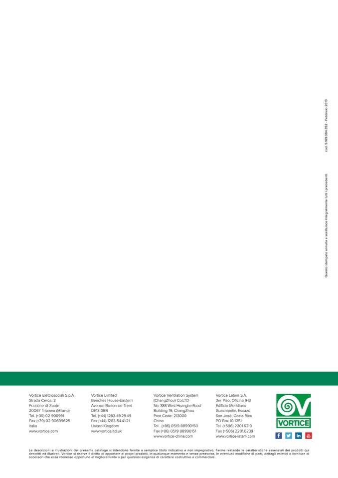 descritti ed illustrati, Vortice si riserva il diritto di apportare ai propri prodotti, in qualunque momento e senza preavviso, le eventuali modifiche di parti, dettagli estetici o forniture di