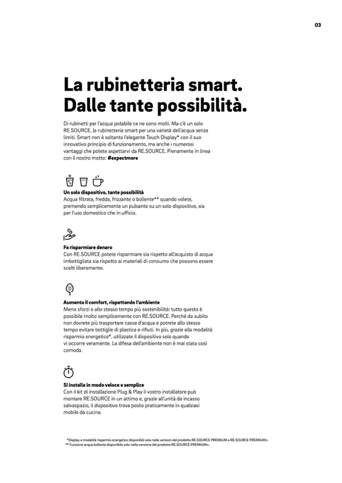 ** Funzione acqua bollente disponibile solo nella versione del prodotto RE.SOURCE PREMIUM+.