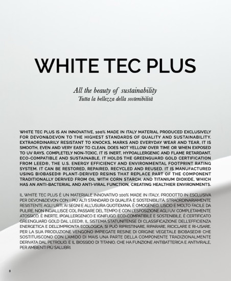 WHITE TEC PLUS IS AN INNOVATIVE, 100% MADE IN ITALY MATERIAL PRODUCED EXCLUSIVELY