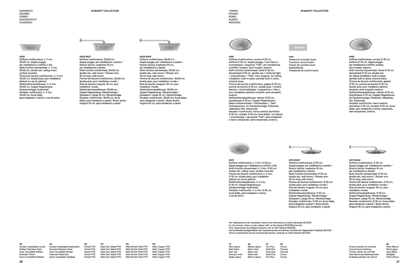 Per l’abbinamento dei miscelatori doccia fare riferimento al Listino Generale 09/2018.