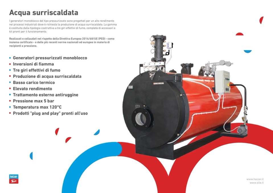 nei processi industriali dove è richiesta la produzione di acqua surriscaldata. La gamma